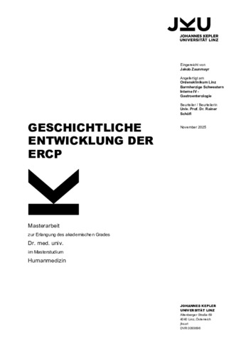 Zaunmayr, Jakob (2025) GESCHICHTLICHE ENTWICKLUNG DER ERCP. Masterarbeit thesis, Johannes Kepler Universität Linz.